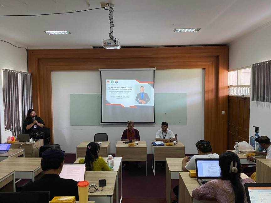 (Denpasar, 21/08/2025) Fakultas Ilmu Komunikasi dan Bisnis Universitas Dwijendra menyelenggarakan sebuah workshop “Pelatihan Metodologi Pembelajaran” dengan tema “Implementasi Metodologi Pembelajaran Berpusat Pada Mahasiswa Aktif”. Acara ini menghadirkan narasumber I Komang Dedik Susila, S.Pd.,M.Pd, dari Fakultas Keguruan dan Ilmu Pendidikan yang memberikan banyak wawasan terkait Pelatihan Metodologi Pembelajaran. Workshop dibuka secara resmi oleh Drs. I Made Sutika, M.Si selaku dekan Fakultas Ilmu Komunikasi dan Bisnis. Dalam sambutannya, beliau menyampaikan pentingnya memahami pembelajaran dan pengajaran bagi dosen.