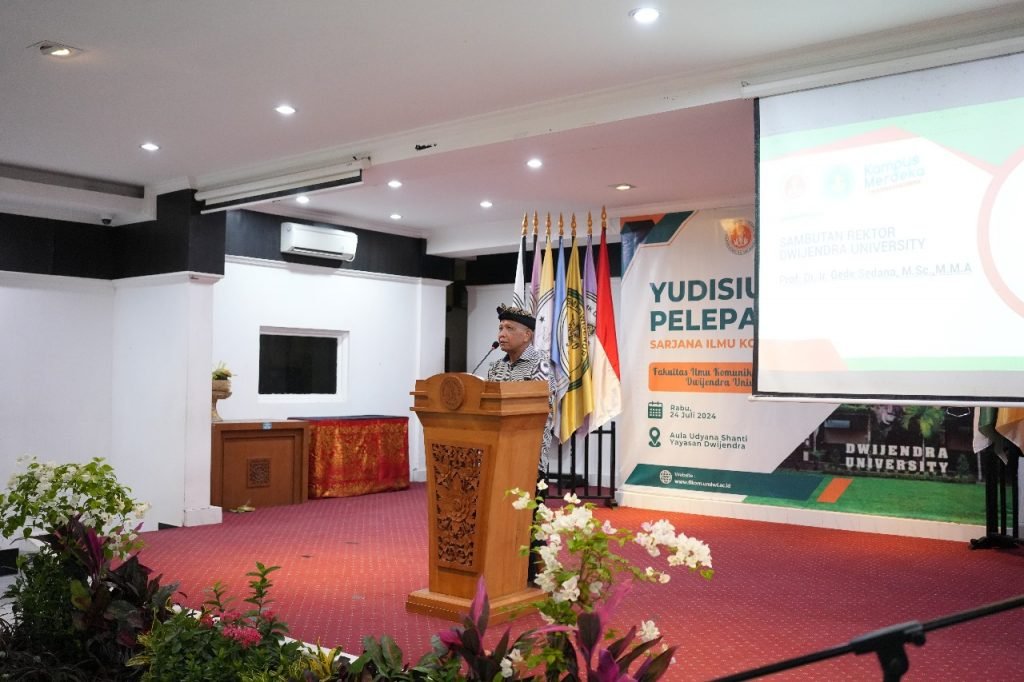 Bertempat di Aula Udyana Shanti Yayasan Dwijendra Denpasar digelar Yudisium Sarjana ke- 36, Prodi Ilkom Fakultas Ilmu Komunikasi dan Bisnis Dwijendra University, Rabu (24/7/2024). Sebagai pertanda penyelesaian seluruh kewajiban mahasiswa melaksanakan Tridaharma Perguruan Tinggi, Dekan FikomBis Drs I Made Sutika,M.Si meyudisium sebanyak 26 orang yudisiawan dan melakukan pelepasan untuk mengikuti wisuda yang akan dilaksanakan tanggal 28 Juli 2024.