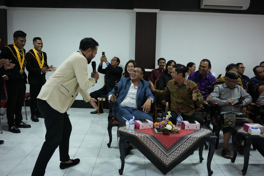 Dekan Fakultas Ilmu Komunikasi dan Bisnis Drs I Made Sutika,M.Si, dalam kata sambutannya mengatakan bahwa perlunya para yudisiawan untuk terus meningkatkan kualitas diri dengan tiada henti, belajar seumur hidup dengan aneka sumber belajar. Belajar tidak hanya dibangku kuliah tetapi juga melalui berbagai sumber lainnya maupun bisa belajar secara mandiri (autodidak). Made Sutika juga mengutip pandangan filosof terkenal Aristoteles bahwa “Pendidikan itu akarnya pahit tapi buahnya manis”. “Jagalah nama baik almamater, loyallah dengan almamater, jangan sampai bagai kacang lupa akan kulitnya,”, harapnya